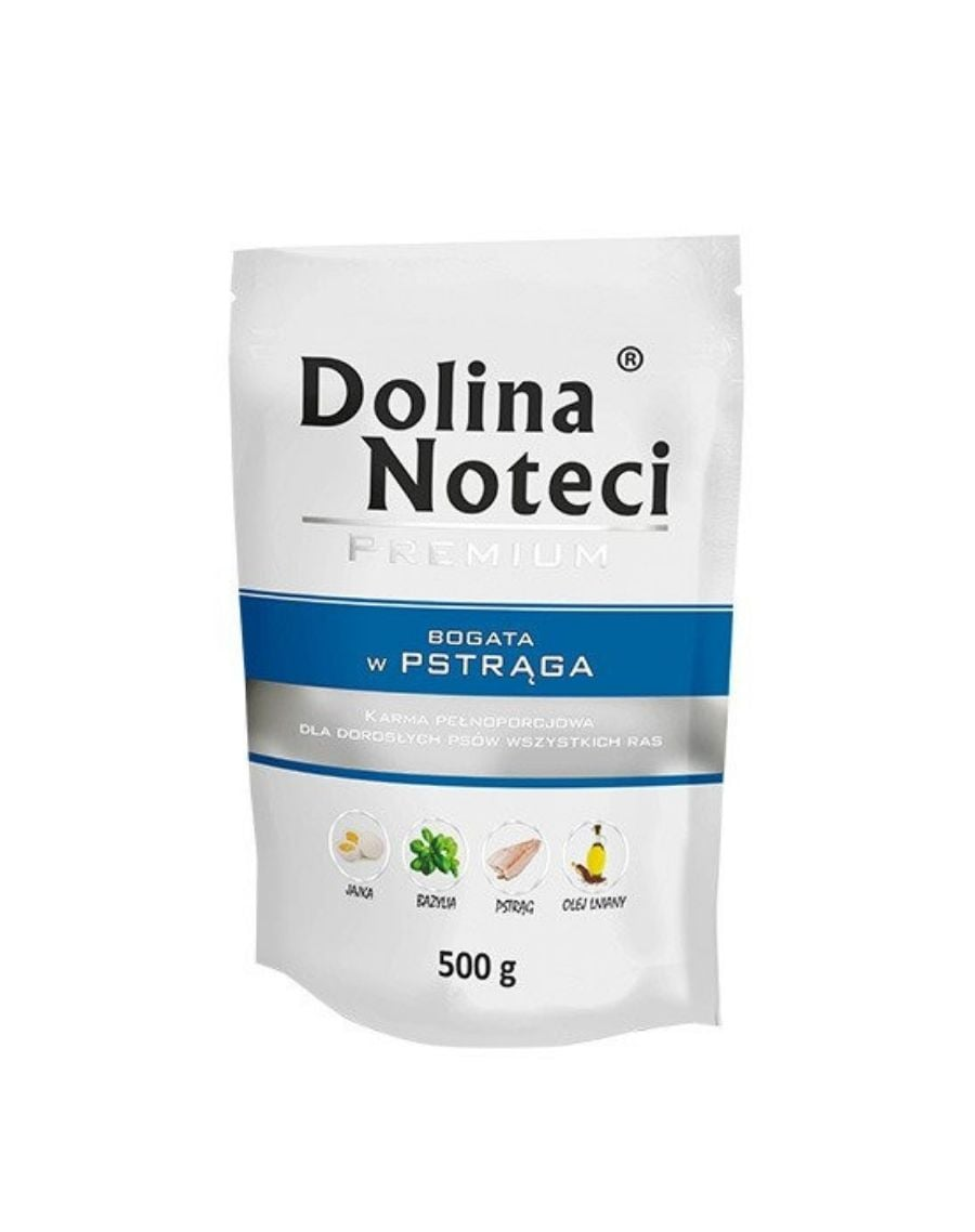 O hrană care este o sursă deosebit de valoroasă de aminoacizi, metionină și triptofan. În plus, conținutul ridicat de cisteină din carnea de păstrăv crește conținutul de aminoacizi sulfuroși. Valoros este și conținutul de seleniu și mangan - minerale care joacă un rol important în stimularea funcțiilor de apărare ale organismului. Grăsimea de păstrăv completează dieta câinelui cu acizi EPA și DHA.