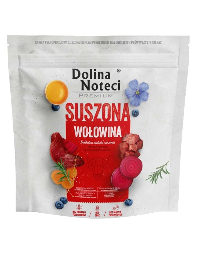 Dolina Noteci Premium Vită este o hrană completă, uscată, concepută pentru câinii adulți de toate rasele și formulată pentru a acoperi integral nevoile lor zilnice nutriționale. Rețeta se bazează pe ingrediente de origine animală în proporție de 80%, provenite din vită, porc și cod, dintre care 40% reprezintă mușchi scheletici – o sursă naturală valoroasă de proteine și creatină.