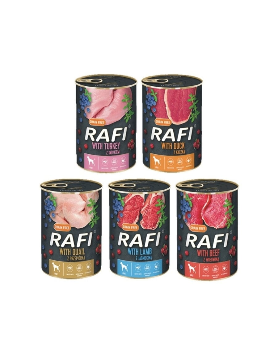 Carne și produse de origine animală 65% (carne de rață 4%), fructe (afine 2%, merișoare 2%), minerale, uleiuri și grăsimi (ulei de in 0,2%), cimbru uscat 0,01%.