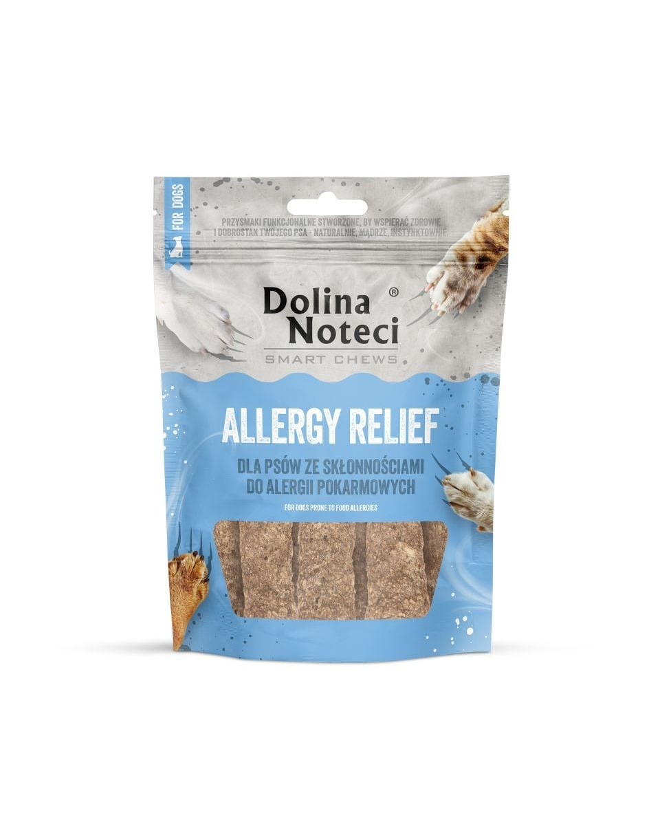 Dolina Noteci Smart Chews Allergy Relief sunt recompense uscate specializate, create pentru câini adulți de toate rasele, cu sistem digestiv sensibil și tendință la alergii alimentare. Rețeta conține 80% carne și produse de origine animală exclusiv din miel, oferind gust intens și valoare nutritivă ridicată, cu aport de aminoacizi esențiali și acizi grași.