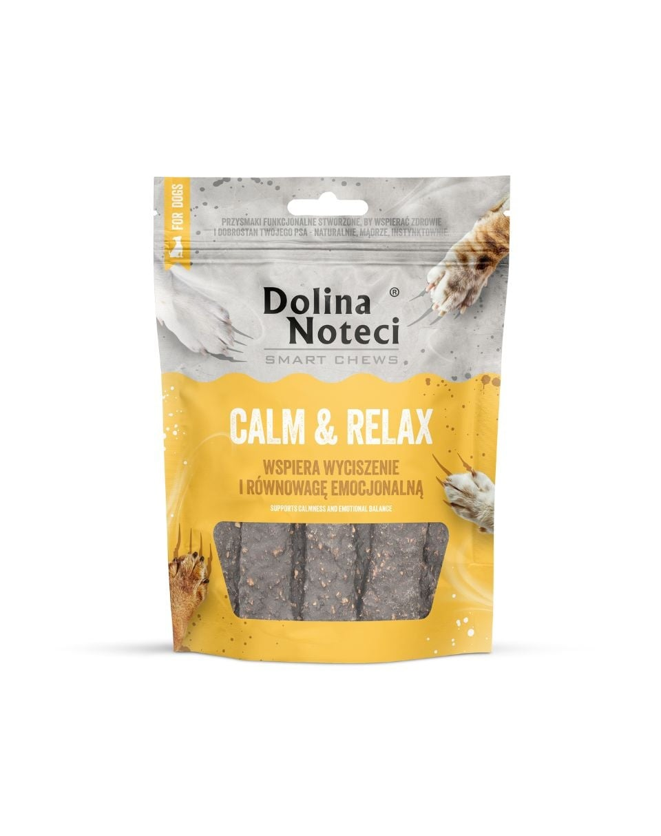 Dolina Noteci Smart Chews Calm & Relax sunt recompense uscate create pentru câini adulți de toate rasele care au nevoie de sprijin în situații stresante și de ajutor pentru relaxare în viața de zi cu zi. Formula bazată pe 80% carne și produse de origine animală asigură gust ridicat, valoare nutritivă mare și un aport optim de proteine ușor digerabile și acizi grași esențiali. Produsul nu conține conservanți sau potențiatori artificiali de gust și miros, fiind potrivit și pentru câinii sensibili.