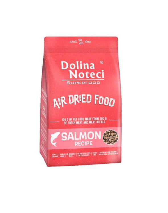 Dolina Noteci Superfood Danie z Łososia este o hrană completă, uscată, fără cereale, destinată câinilor adulți. Rețeta bazată pe somon, vită, porc și curcan oferă o combinație echilibrată de proteine animale de înaltă calitate, acizi grași esențiali și nutrienți valoroși, asigurând vitalitatea și sănătatea zilnică a câinelui tău.