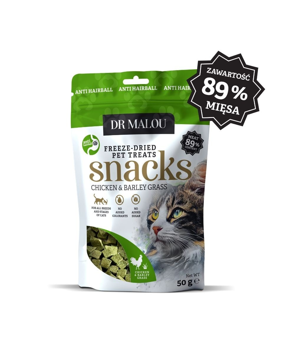 Hrană complementară pentru pisici, cuburi liofilizate cu pui și iarbă de orz Dr Malou