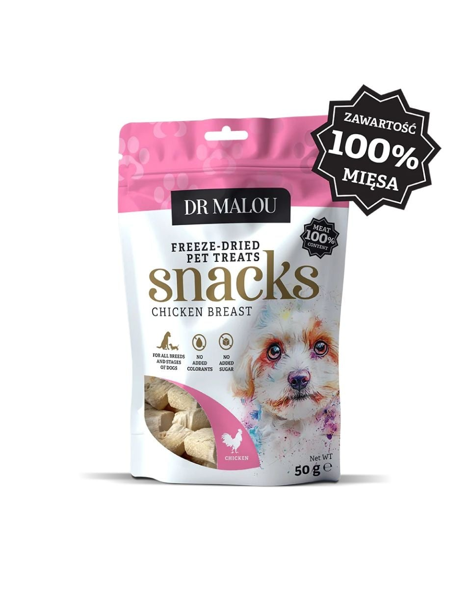 Cuburile din carne Dr Malou, din piept de pui liofilizat, sunt o gustare naturală și pură pentru orice câine, ideale pentru proprietarii cei mai exigenți. Oferă-i companionului tău ceea ce este simplu și sănătos!