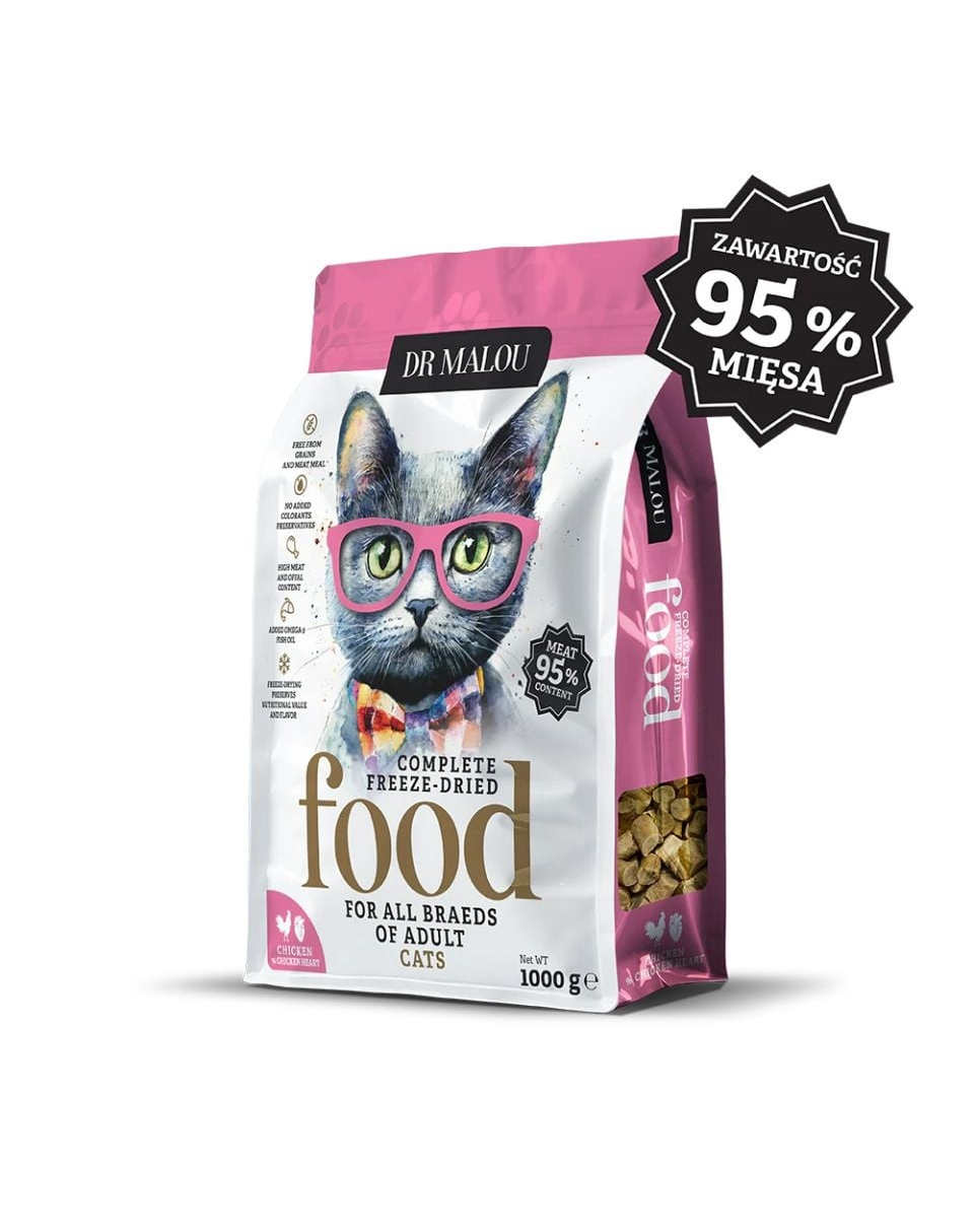DR MALOU Liofilizowana karma Kurczak z kurzymi sercami dla kotów