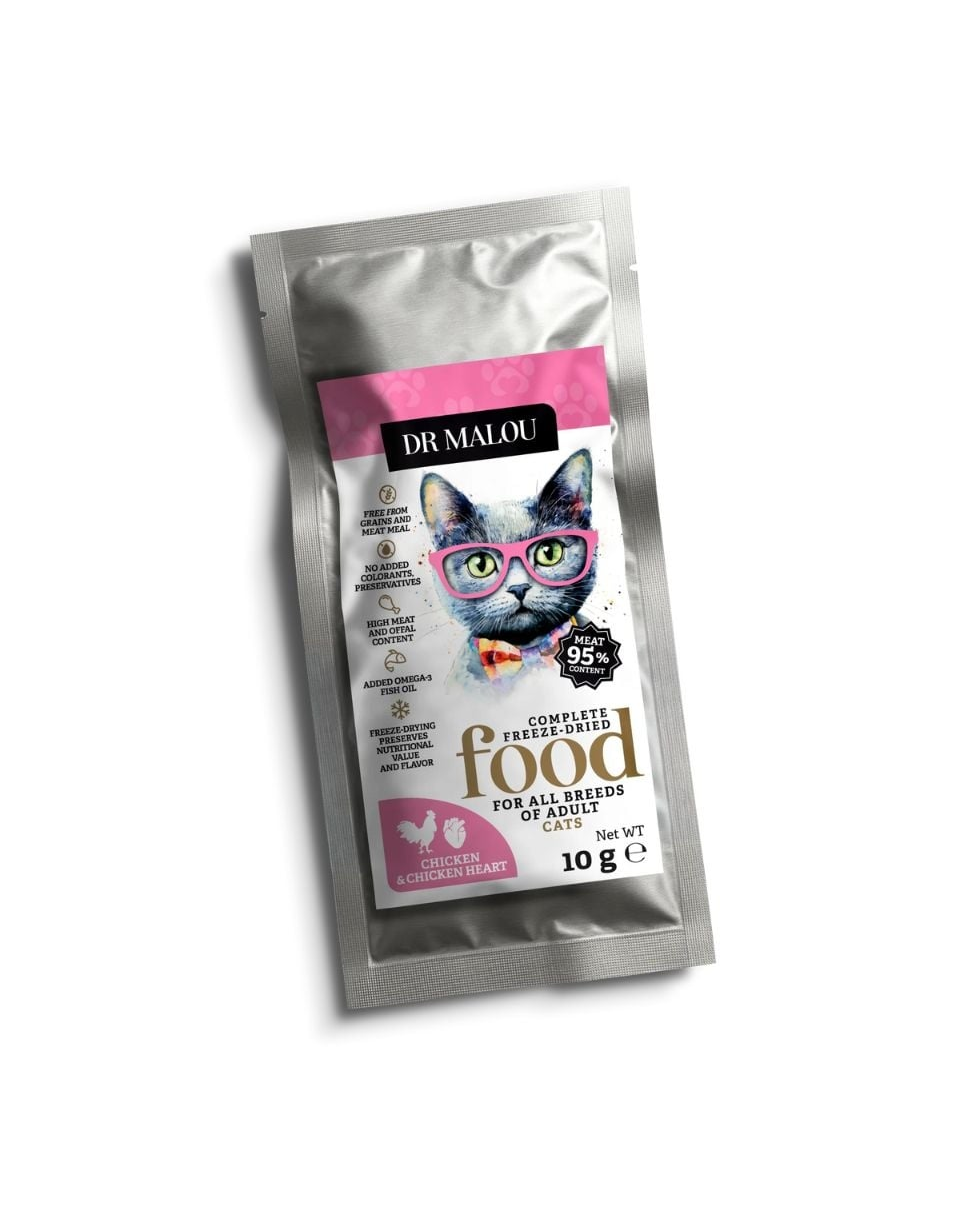 DR MALOU Liofilizowana karma Kurczak z kurzymi sercami dla kotów