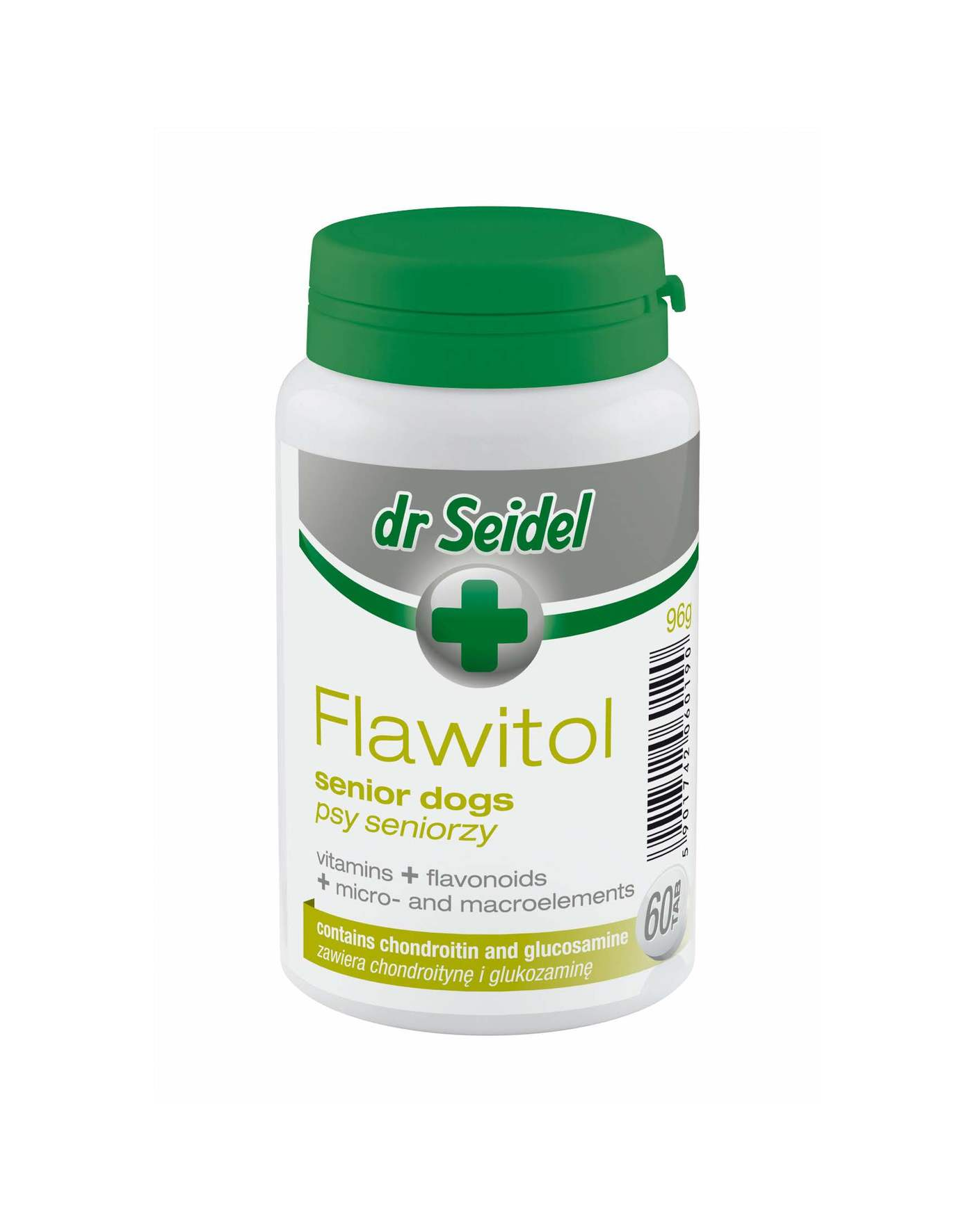 Supliment pentru articulații la câini seniori. DR SEIDEL Flawitol este un supliment nutritiv destinat câinilor seniori, formulat pentru susținerea mobilității și reducerea disconfortului articular asociat procesului de îmbătrânire.