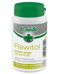 DR SEIDEL Flawitol este un supliment nutritiv dedicat câinilor seniori, formulat pentru susținerea mobilității articulare și a funcțiilor generale ale organismului în procesul de îmbătrânire.