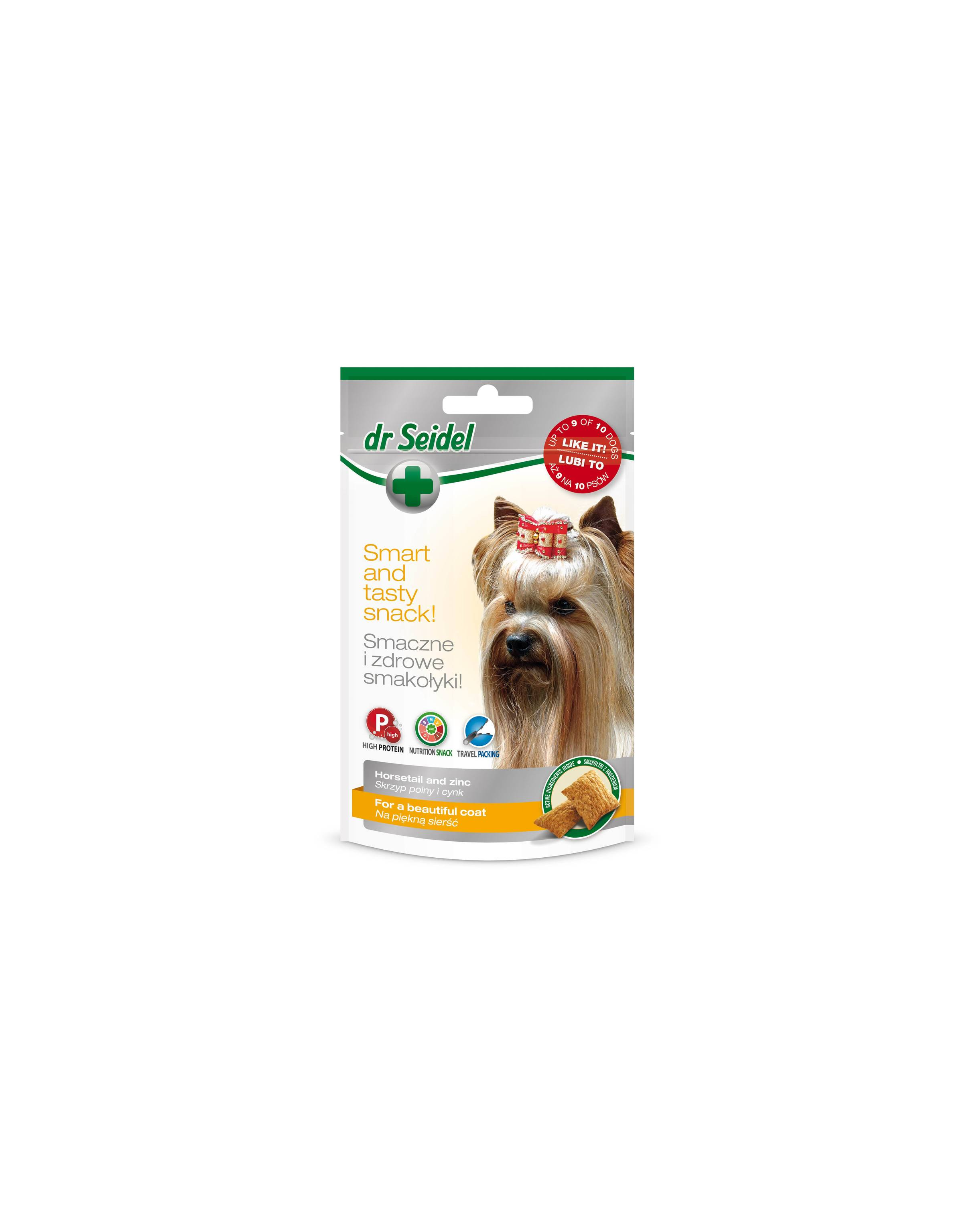 Gustări funcționale pentru piele și blană la câini. DR SEIDEL sunt gustări complete, concepute pentru a susține sănătatea pielii și a îmbunătăți aspectul blănii.