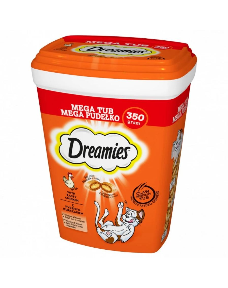 Dreamies cu pui delicios sunt niște pateuri crocante delicioase cu umplutură moale pentru pisici de peste 8 săptămâni. Textura preferată a pisicii și gustul delicios nu sunt totul, deoarece bunătățile Dreamies sunt, de asemenea, îmbogățite cu minerale și vitamine. Bunătățile Dreamies™ sunt gustarea perfectă cu care să vă surprindeți plăcut prietenul felin. Scuturați ambalajul și vedeți cum pisica dumneavoastră vine în fugă!