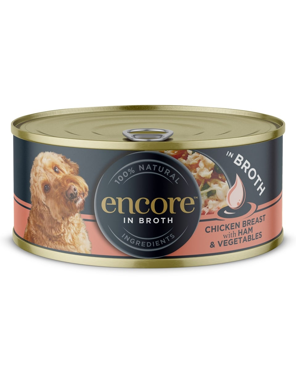 Hrană umedă naturală și gustoasă, complementară, pentru câini adulți, preparată din piept fraged de pui, combinat cu șuncă și legume, servite într-un bulion ușor și aromat. Rețeta simplă se bazează pe ingrediente de înaltă calitate, fără coloranți artificiali, conservanți sau umpluturi inutile.