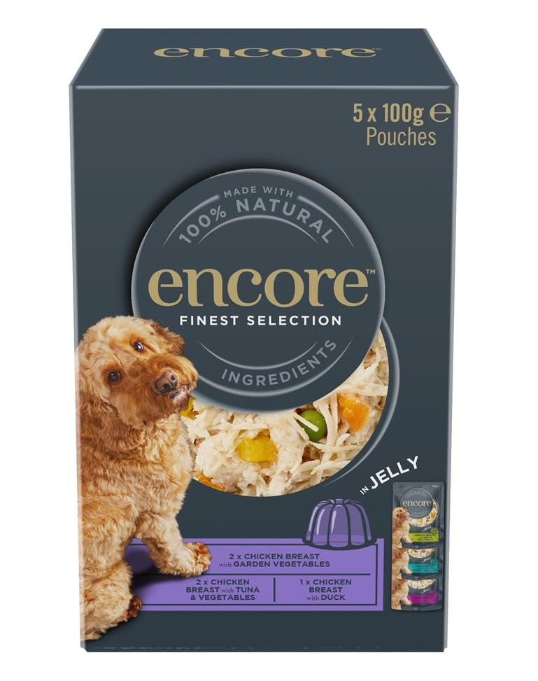 ENCORE Dog Finest Selection in Jelly este o hrană complementară de înaltă calitate pentru câini adulți, disponibilă în multipachet de 5 plicuri a câte 100 g. Fiecare plic conține rețete atent selecționate pe bază de carne, în formă de jelly, fără adaosuri artificiale sau umpluturi pe bază de cereale, oferind câinelui tău varietate și savoare zilnică.