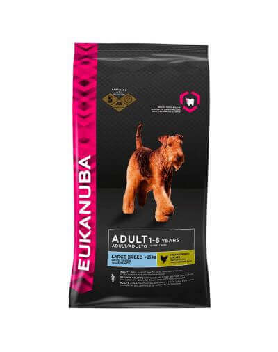 Hrana completă Eukanuba Adult Large conține ingrediente atent selecționate pentru o musculatură puternică și pentru a păstra un control ideal greutății. Vitaminele și mineralele ajută la păstrarea articulațiilor și oferă o mobilitate crescută.