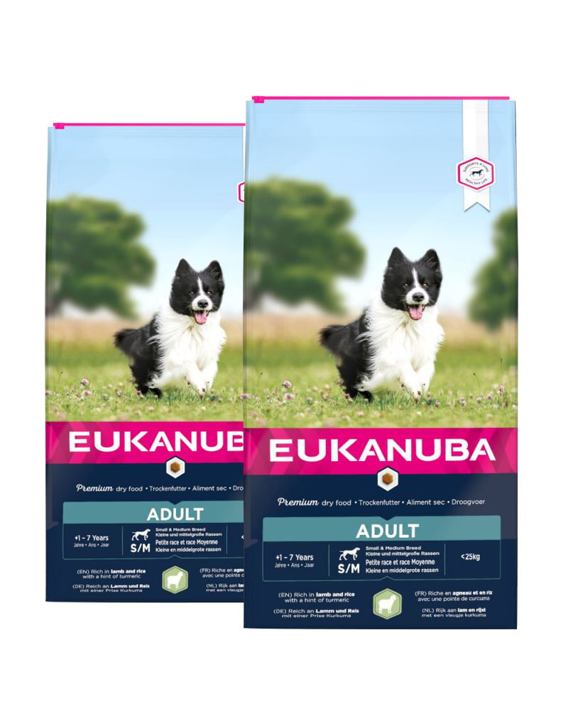 Eukanuba Adult Medium Breeds Miel și Orez este o hrană completă, echilibrată pentru câinii adulți care preferă mielul. Cui nu i-ar plăcea?