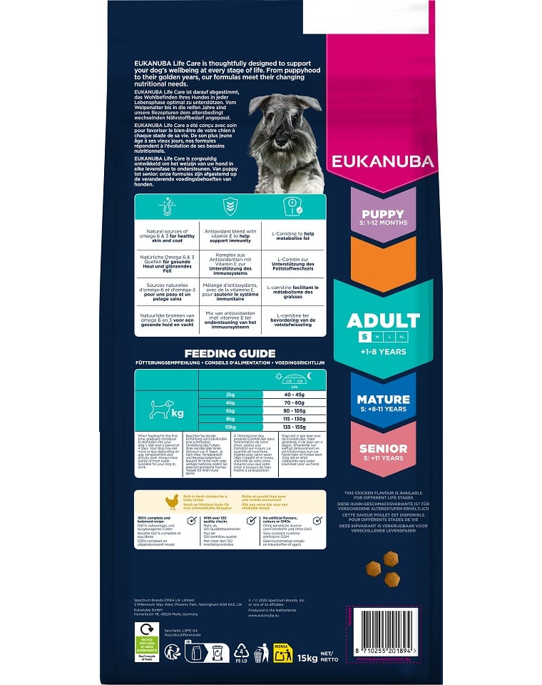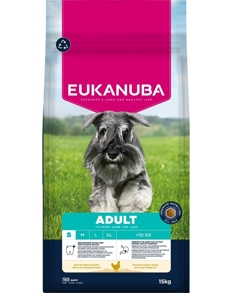 Hrana uscată EUKANUBA Adult Small Breeds Chicken este o formulă completă și echilibrată, creată special pentru câinii adulți de rase mici (1–8 ani). Rețeta premium, dezvoltată pe baza cercetărilor științifice, oferă nutriția de care câinele tău are nevoie zilnic pentru sănătate, energie și vitalitate.