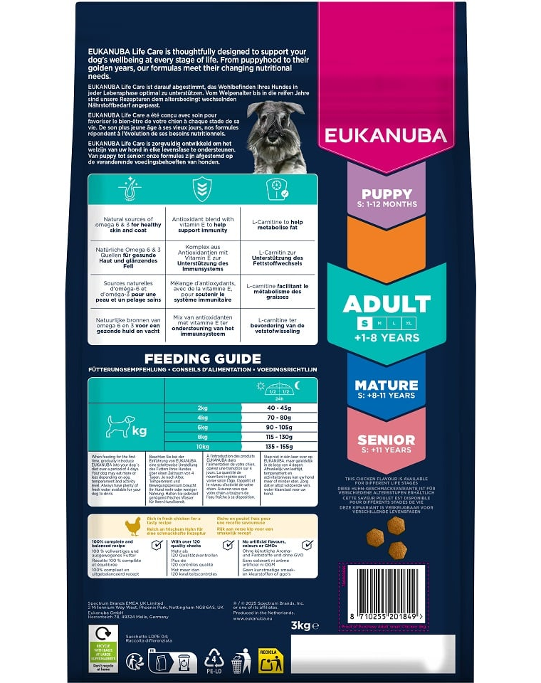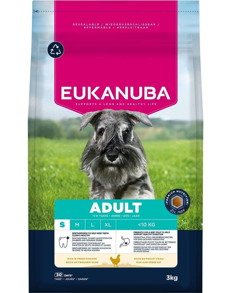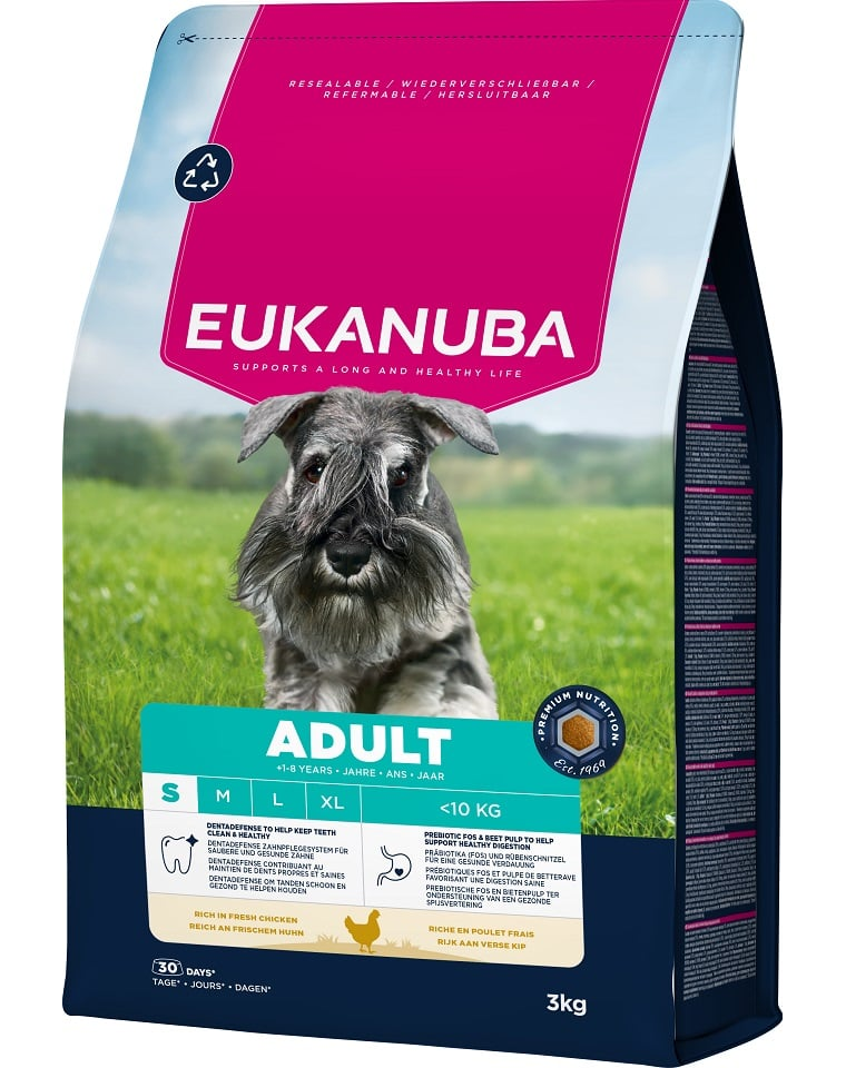 Hrana uscată EUKANUBA Adult Small Breeds Chicken este o formulă completă și echilibrată, creată special pentru câinii adulți de rase mici (1–8 ani). Rețeta premium, dezvoltată pe baza cercetărilor științifice, oferă nutriția de care câinele tău are nevoie zilnic pentru sănătate, energie și vitalitate.