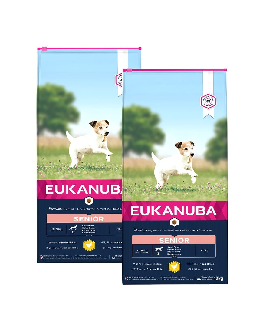 EUKANUBA Caring Senior Small Breed este o hrană pentru câinii de rasă mică mai în vârstă, bogată în pui proaspăt.