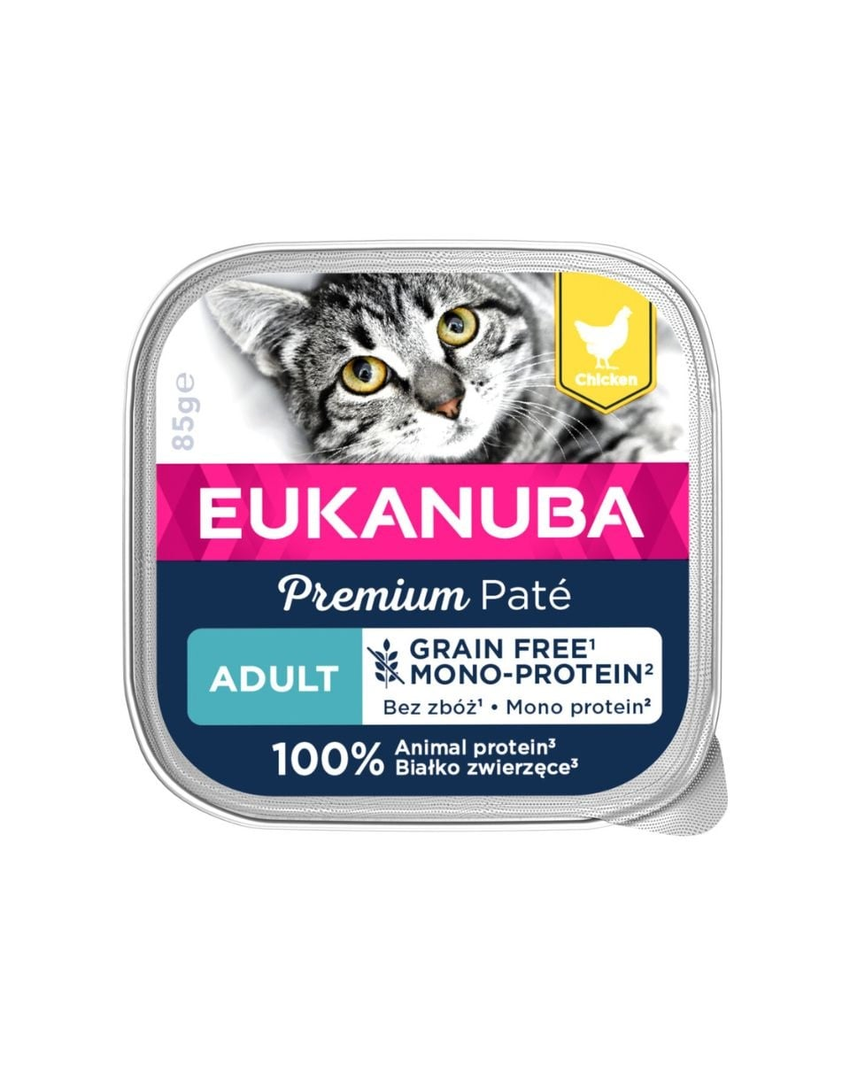 EUKANUBA Grain Free Adult este o hrană umedă pentru pisici adulte cu pui.