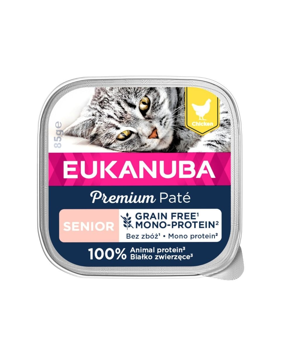 EUKANUBA Grain Free Senior este o hrană umedă pentru pisici senior cu pui.