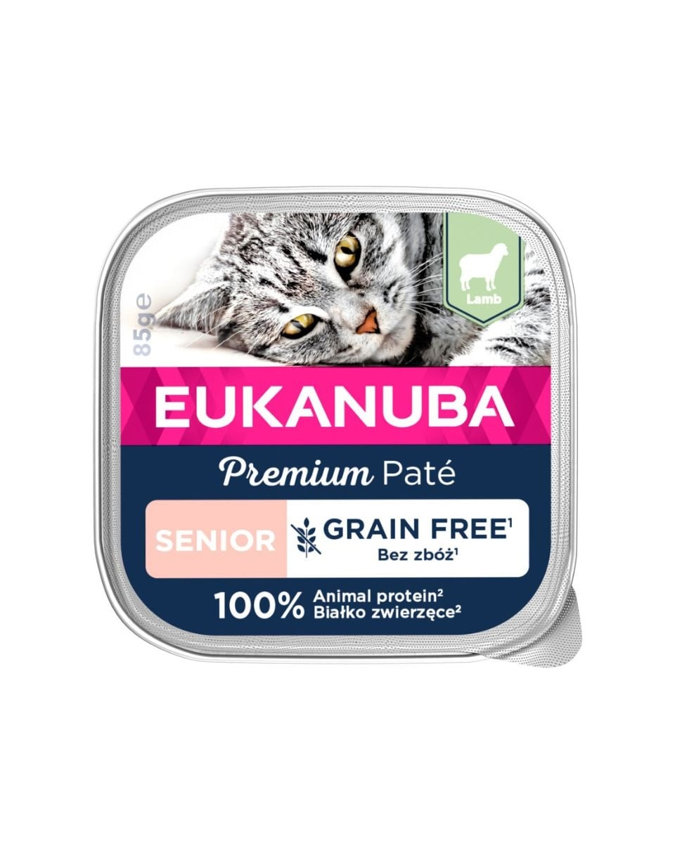EUKANUBA Grain Free Senior este o hrană umedă pentru pisici senior cu miel.