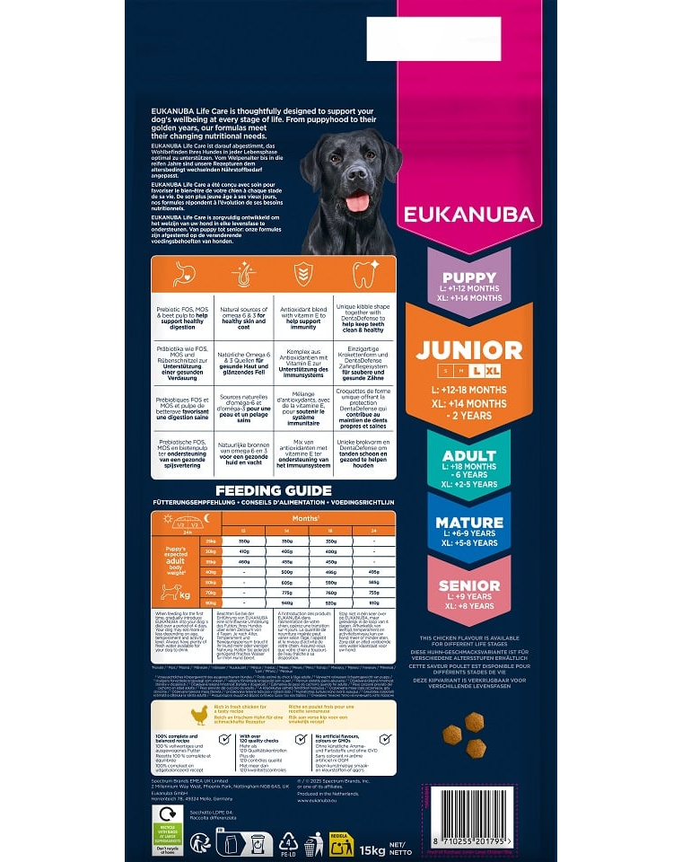Dezvoltată pe baza cercetărilor științifice, formula EUKANUBA Life Care oferă sprijin adaptat nevoilor fiziologice ale câinilor mari în perioada de dezvoltare intensă a mușchilor, oaselor și articulațiilor.