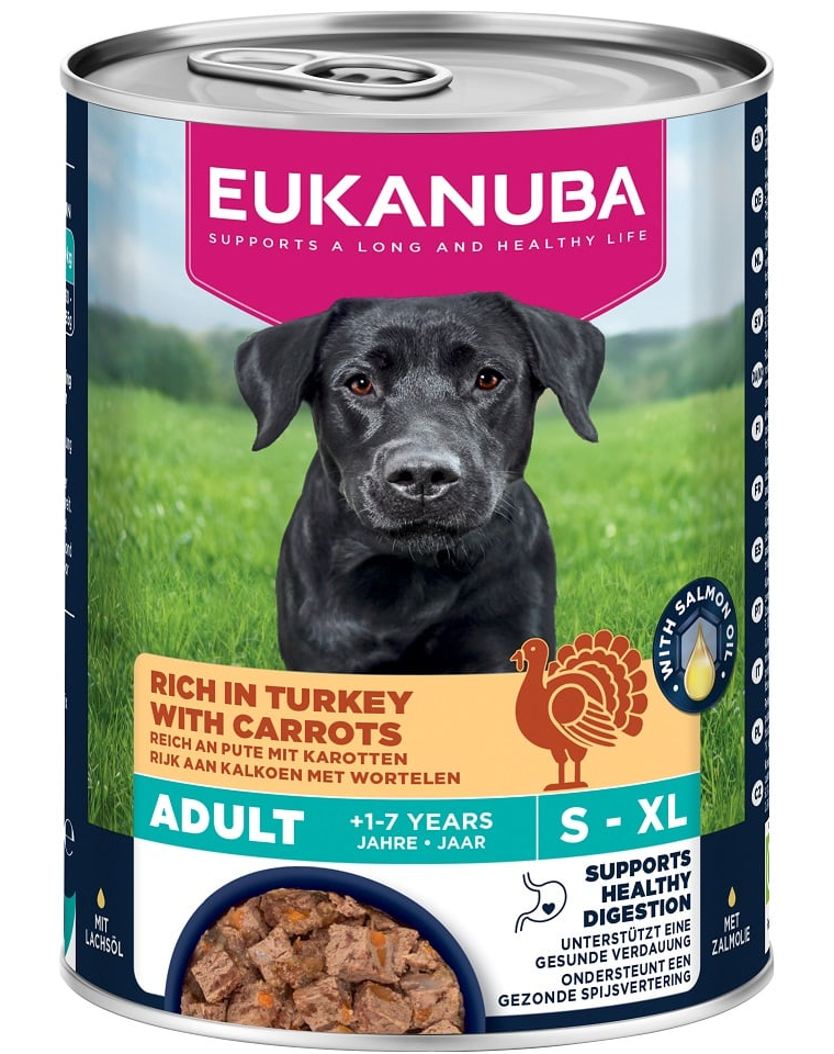 EUKANUBA Adult este o hrană umedă completă și echilibrată, creată pentru câinii adulți de toate rasele, cu vârsta între 1 și 7 ani. Formula oferă toți nutrienții necesari pentru menținerea sănătății, energiei și stării de bine.