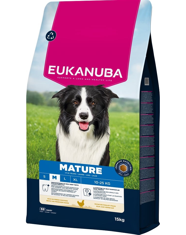 Hrana uscată EUKANUBA Mature Medium Breeds Chicken face parte din linia premium EUKANUBA Life Care, concepută pe baza cercetărilor științifice pentru a sprijini sănătatea câinilor la fiecare etapă a vieții lor. Această formulă este destinată câinilor maturi de rase medii (7–10 ani), oferind o dietă completă, echilibrată și ușor digerabilă, care susține vitalitatea și o îmbătrânire sănătoasă.
