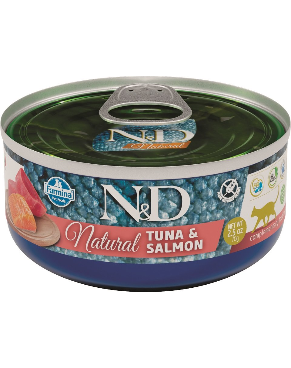 Alimente umede cu o compoziție naturală. Tonul și somonul oferă proteine animale valoroase. Palatabilitate ridicată datorită ingredientelor proaspete și de foarte bună calitate, cu valoare nutritivă ridicată. Bogat în omega 3, bogat în proteine, sărac în grăsimi.