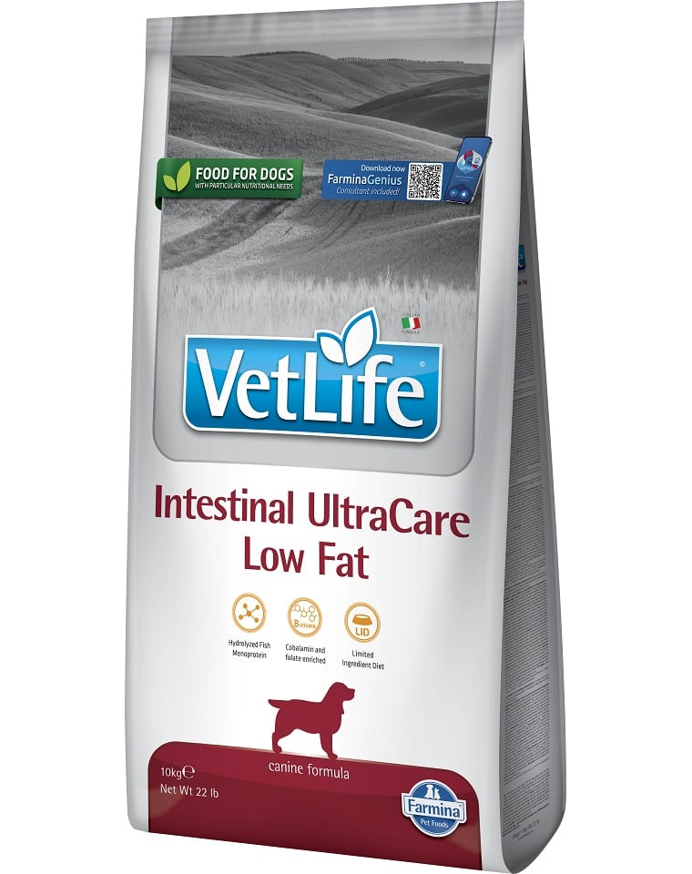 Farmina Vet Life Intestinal Ultra Care este o rețetă avansată de nutriție creată pentru câinii cu tulburări de digestie și absorbție a nutrienților. Dieta a fost elaborată pentru a sprijini regenerarea mucoasei intestinale, a îmbunătăți digestia și a favoriza o mai bună absorbție a nutrienților alimentari.