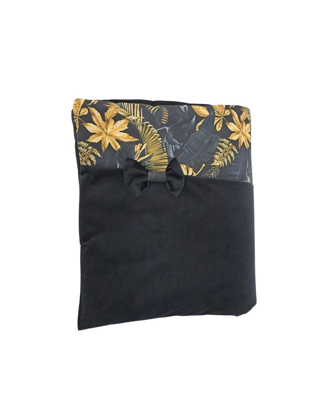 Pătura este cusută dintr-un material plăcut și moale. Pătura are un imprimeu elegant cu frunze de aur. Pătura are o fundă cusută pe ea.