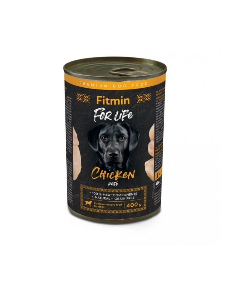 Fitmin For Life Pate cu pui este o hrană complementară naturală, creată special pentru câinii adulți din toate rasele. Rețeta se bazează pe carne și organe de pui atent selecționate, fără adaos de cereale, soia, zahăr sau gluten, oferind o nutriție echilibrată și ușor digerabilă chiar și pentru câinii cu stomac sensibil.