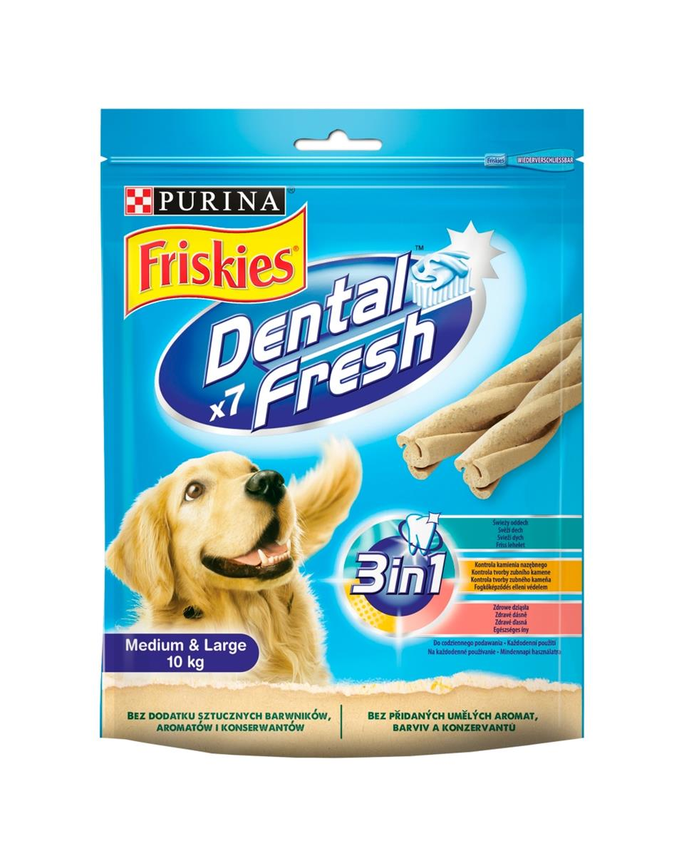 Recompense gustoase de mestecat pentru a ajuta la menținerea igienei orale a câinelui. Datorită aromei lor de mentă, asigură o respirație proaspătă. Marginile și structura specială favorizează masticația activă, ceea ce ajută la reducerea formării tartrului pe dinți. Acestea curăță și masează ușor gingiile. Fără adaos de coloranți, arome sau conservanți artificiali.