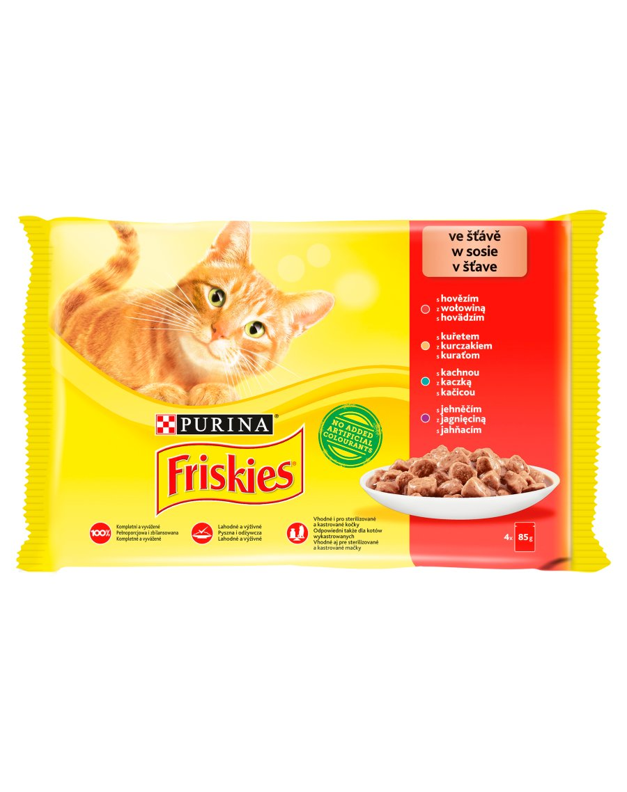 Hrana umedă Friskies este o hrană complet echilibrată, care oferă pisicilor substanțele nutritive de care au nevoie pentru a funcționa corect și cu arome pe care le vor iubi. Susține sănătatea, vitalitatea și bunăstarea pisicii. Datorită conținutului ridicat de apă, favorizeaza producerea de urină mai diluată, prevenind astfel pietrele la rinichi.