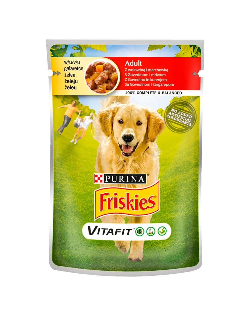Purina Friskies Adult Vital cu carne de vită și jeleu de morcov închis în pliculețe practice sprijină sănătatea câinelui dumneavoastră. Hrana asigură vitalitatea animalelor: scaune compacte, datorită unei digestii sănătoase, blană strălucitoare și piele sănătoasă, strălucire în ochi - semn de vigilență. Oferă toate vitaminele și nutrienții de care animalul dumneavoastră de companie are nevoie pentru a se menține în formă. Fără adaos de coloranți, arome sau conservanți artificiali.