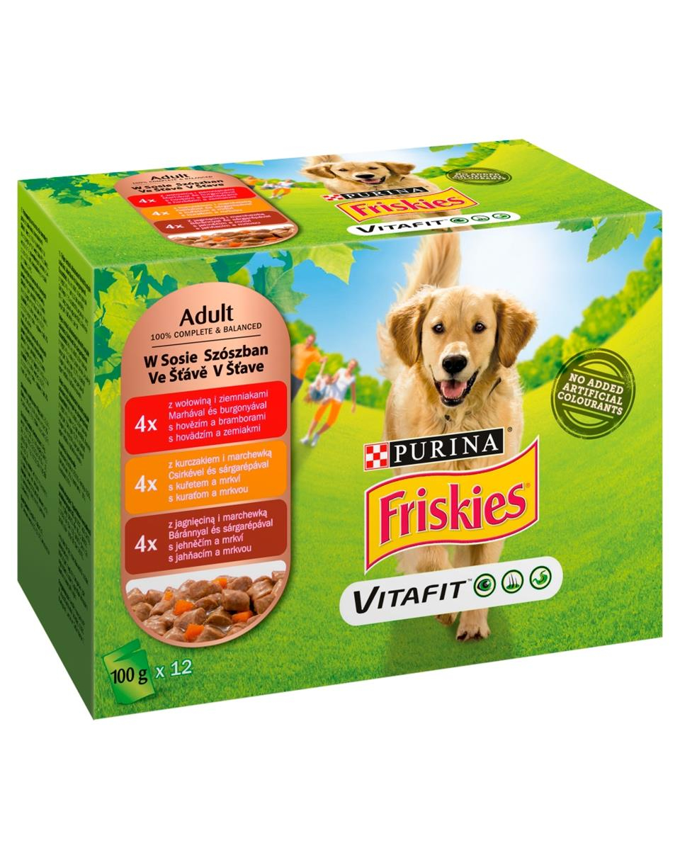 Purina Friskies Adult Vital în sos închis în pliculețe practice sprijină sănătatea câinelui dumneavoastră. Asigură vitalitatea animalelor: scaune compacte, datorită unei digestii sănătoase, blană strălucitoare și piele sănătoasă, o strălucire în ochi - semn de vigilență. Furnizează toate vitaminele și nutrienții necesari pentru a vă menține animalul de companie în condiții optime. Fără adaos de coloranți, arome sau conservanți artificiali.