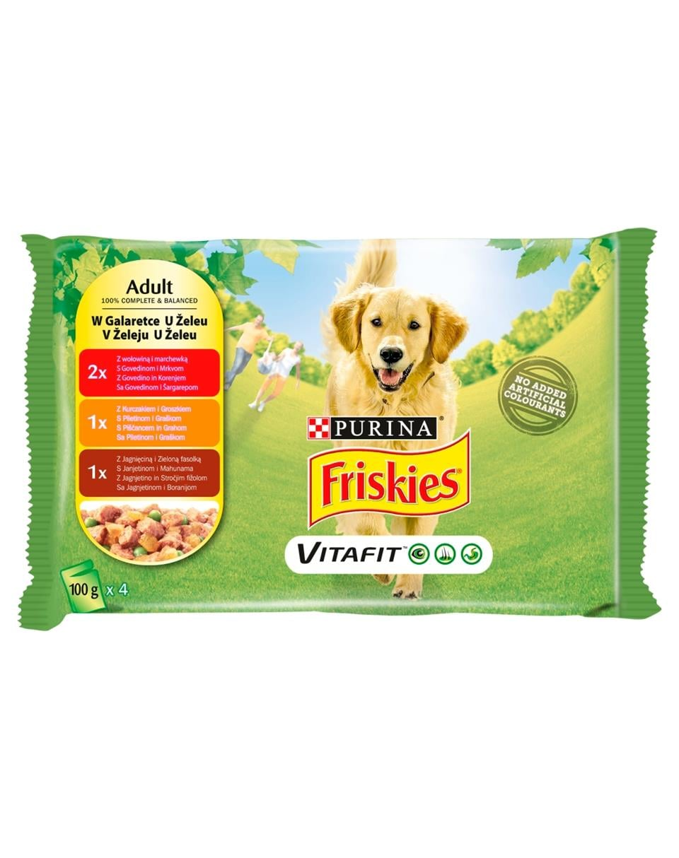 Purina Friskies Adult Vital în gelatină închisă în pliculețe practice sprijină sănătatea câinelui dumneavoastră. Asigură vitalitatea animalelor: scaune compacte, datorită unei digestii sănătoase, blană strălucitoare și piele sănătoasă, o strălucire în ochi - semn de vigilență. Furnizează toate vitaminele și nutrienții necesari pentru a vă menține animalul de companie în condiții optime. Fără adaos de coloranți, arome sau conservanți artificiali.