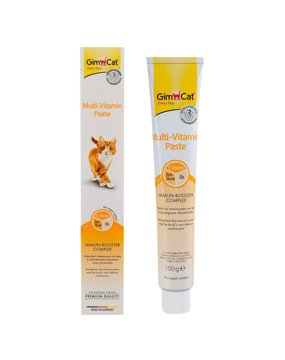 Pasta GimCat Every Day Multi-vitamin este o hrană complementară delicioasă și sănătoasă, potrivită pentru toate pisicile, indiferent de vârstă. Formula sa unică conține 12 vitamine esențiale care întăresc sistemul imunitar și mecanismele naturale de apărare ale organismului.