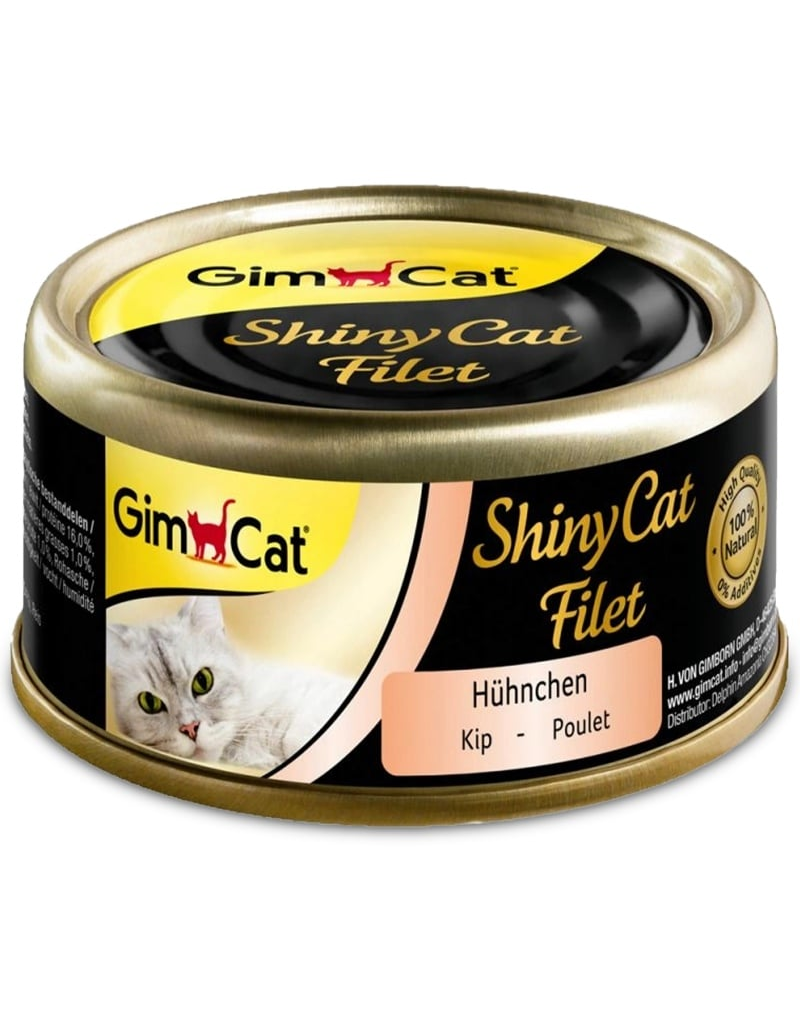 ShinyCat cu pui în bulion este o hrană umedă premium pentru pisici adulte. Conținutul ridicat de proteine întărește sistemul imunitar al pisicii și are un efect pozitiv asupra dezvoltării corporale.