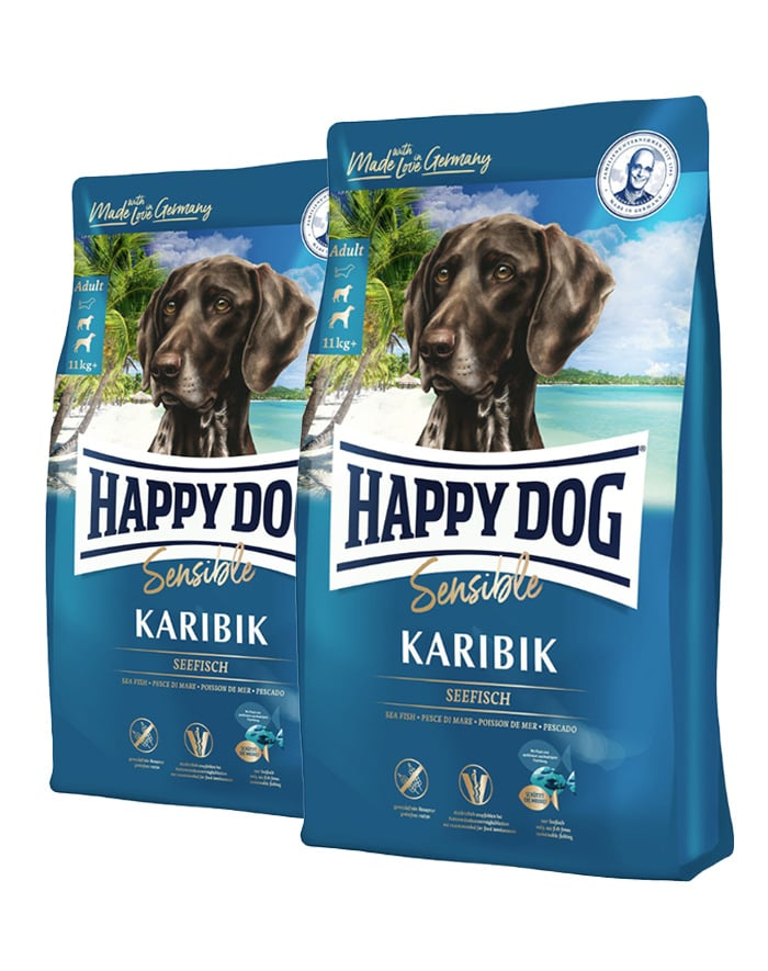 Happy Dog Supreme Karibik este o hrană completă fără cereale și fără gluten recomandată pentru câinii adulți sensibili care au alergii sau intoleranțe alimentare.