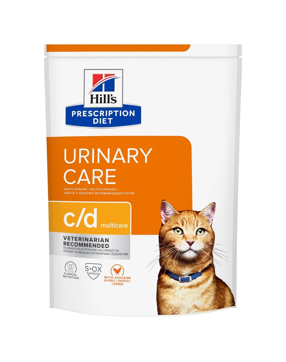 HILL’S Prescription Diet Feline c/d Multicare cu pui este o hrană dietetică completă, uscată, formulată pentru pisicile cu tract urinar sensibil. Rețeta are o formulă dovedită clinic, care contribuie la reducerea recurenței celor mai frecvente semne urinare, susținând sănătatea vezicii urinare pe termen lung.