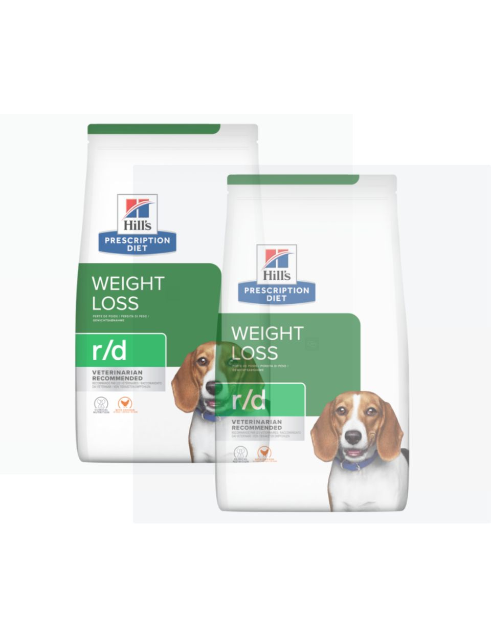 S-a dovedit clinic că Hill's Prescription Diet Canine r/d reduce grăsimea corporală cu 22% în 8 săptămâni.