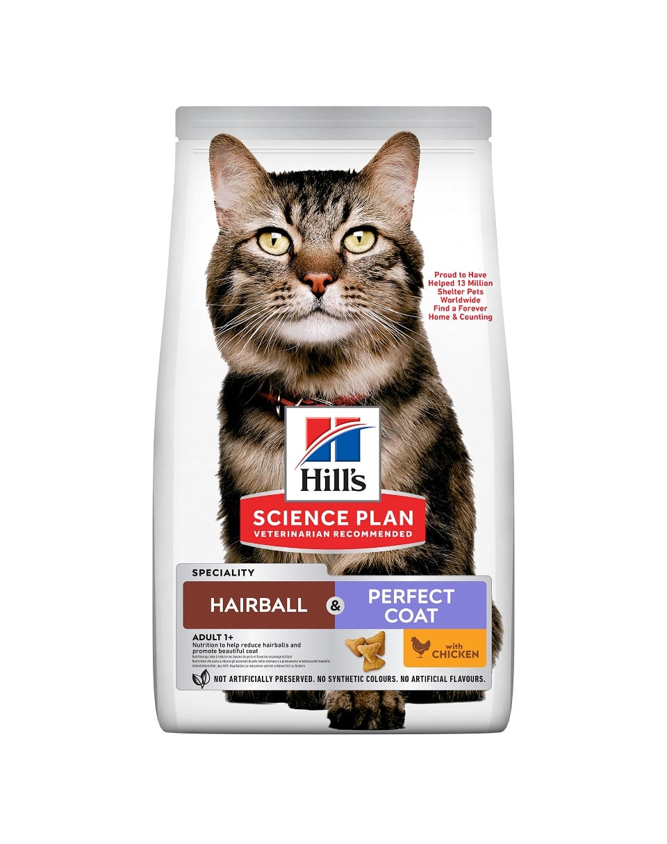 HILL’S Science Plan Hairball & Perfect Coat cu pui este o hrană completă, uscată, destinată pisicilor adulte, formulată pentru a reduce formarea ghemelor de păr (trichobezoare) și pentru a susține o blană lucioasă și o piele sănătoasă. Rețeta se bazează pe cercetare științifică și oferă o nutriție echilibrată pentru starea generală de bine a pisicii.