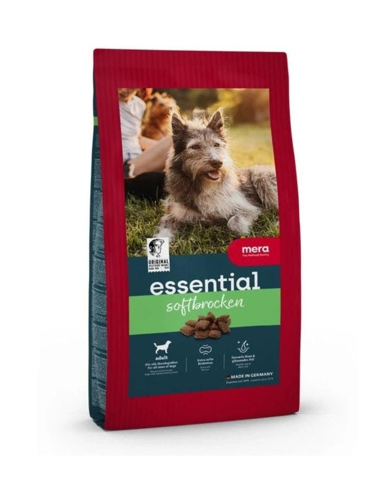 Hrană semi-umedă pentru câini adulți, MERA Essential Soft Brocken este alegerea potrivită dacă ai un câine mofturos, vârstnic sau care refuză hrana uscată clasică. Datorită texturii moi (semi-moist), este mult mai ușor de mestecat și acceptată rapid. Dacă te întrebi „este potrivită pentru câini care nu mănâncă bine?”, răspunsul este da – este concepută exact pentru a crește apetitul și acceptarea hranei.