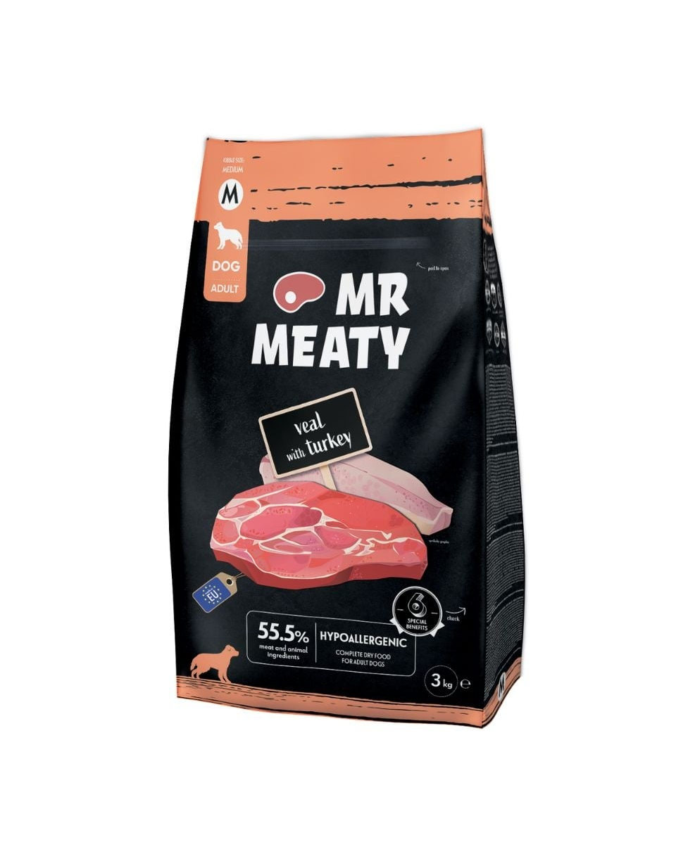 Rețeta Mr Meaty se remarcă prin ingrediente atent selecționate, inclusiv mere, legume și nutrienți esențiali care contribuie la sănătatea generală. Formula a fost dezvoltată de specialiști pentru a acoperi toate nevoile nutriționale ale câinelui tău.