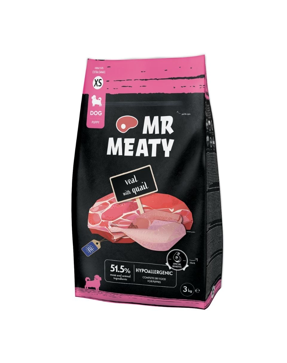 Formula Mr Meaty se bazează pe ingrediente atent selecționate, inclusiv mere, legume și nutrienți esențiali care susțin dezvoltarea armonioasă. Este o alegere potrivită pentru cățeii sensibili sau pretențioși.
