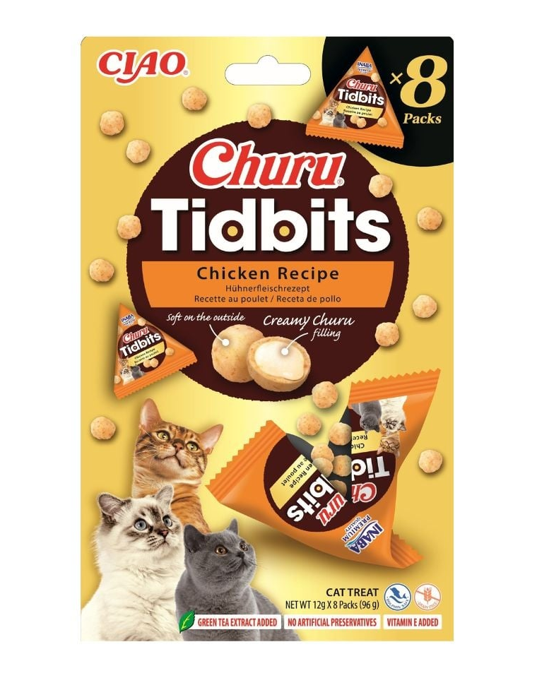 INABA Cat Churu Tidbits Rețetă cu Pui 8×12 g gustări moi și cremoase cu pui pentru pisici