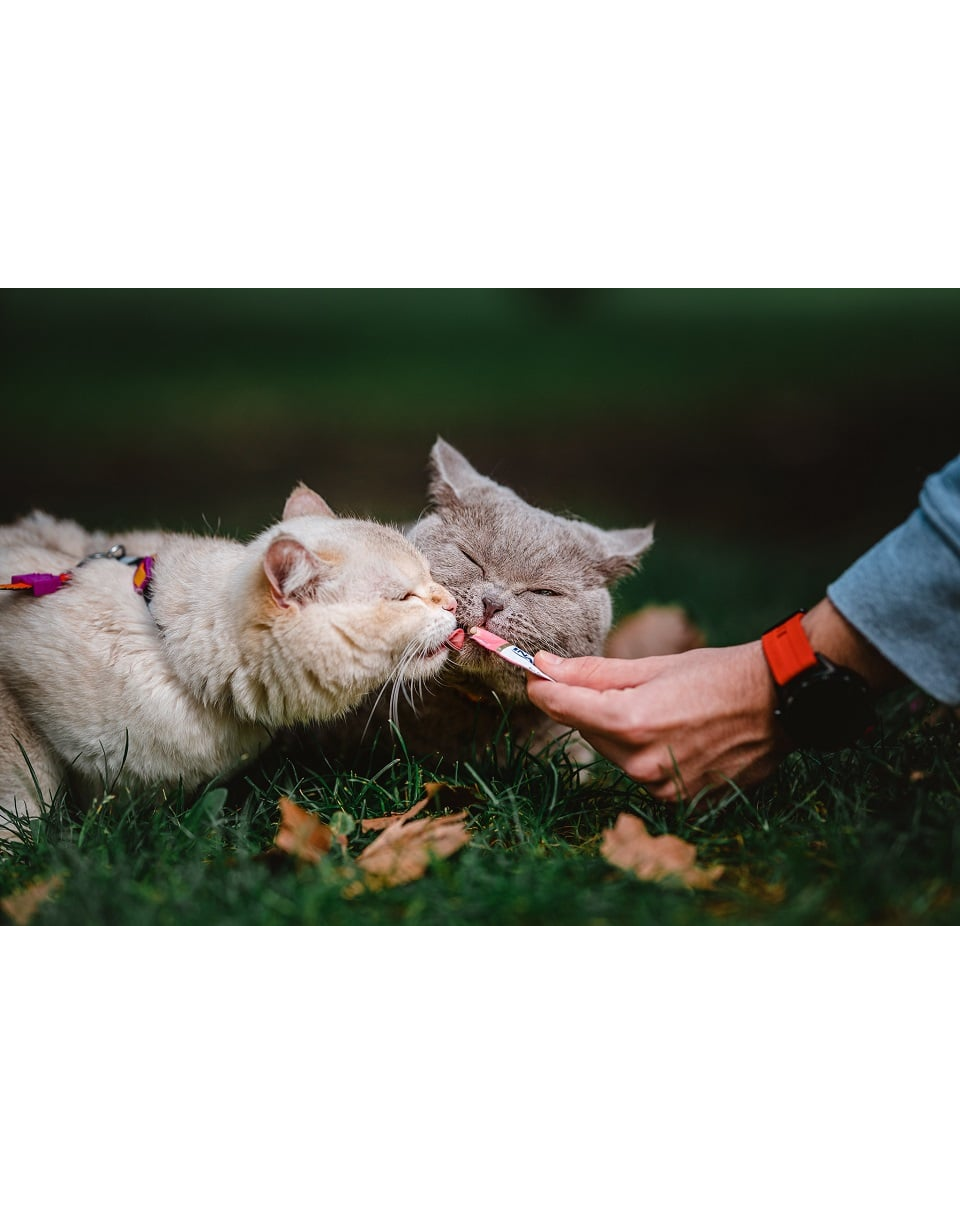 Acestea sunt sărace în calorii, nu conțin cereale sau conservanți, iar ambalajul este conceput într-un mod special, astfel încât să vă puteți hrăni pisica din mână, ceea ce face ca relația voastră să fie și mai puternică.