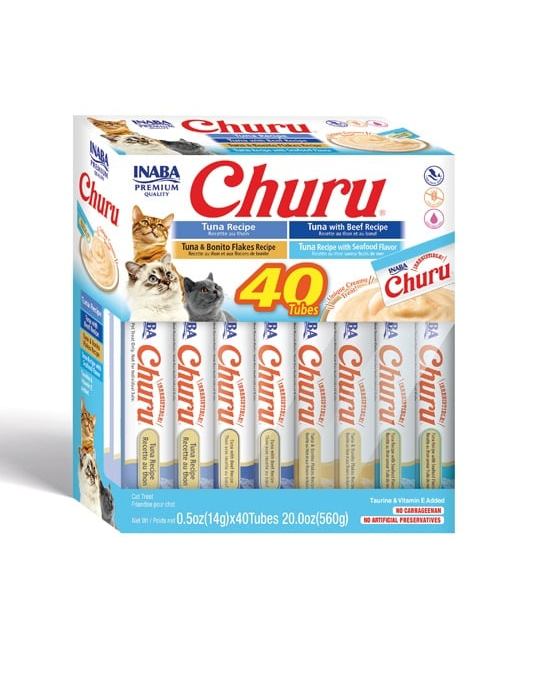 O selecție de bunătăți cremoase cu ton preferate de Churu pentru pisici de toate vârstele.