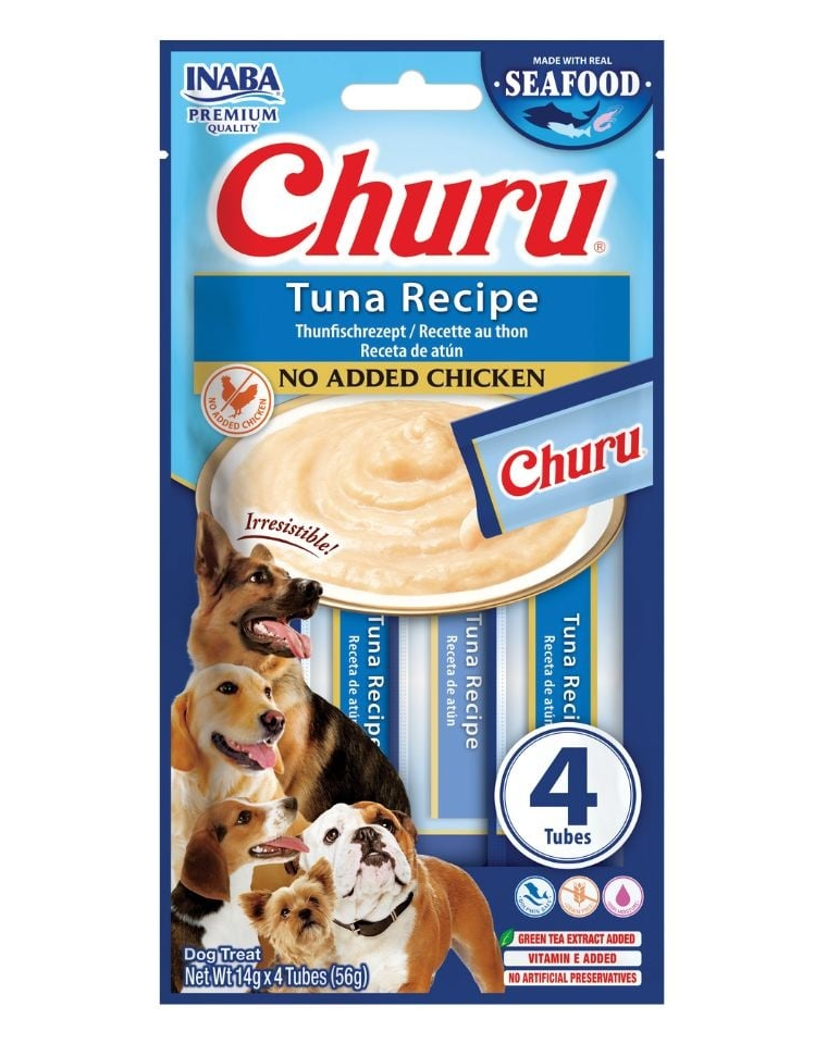 INABA Dog Churu sunt gustări cremoase excepțional de fine, ușoare și extrem de gustoase, în tuburi, cu ton, create special pentru a răsfăța câinii într-un mod sănătos. Consistența delicată și gustul intens de pește fac ca Churu să fie îndrăgite de câini din întreaga lume ca gustare, recompensă sau adaos la mesele zilnice.