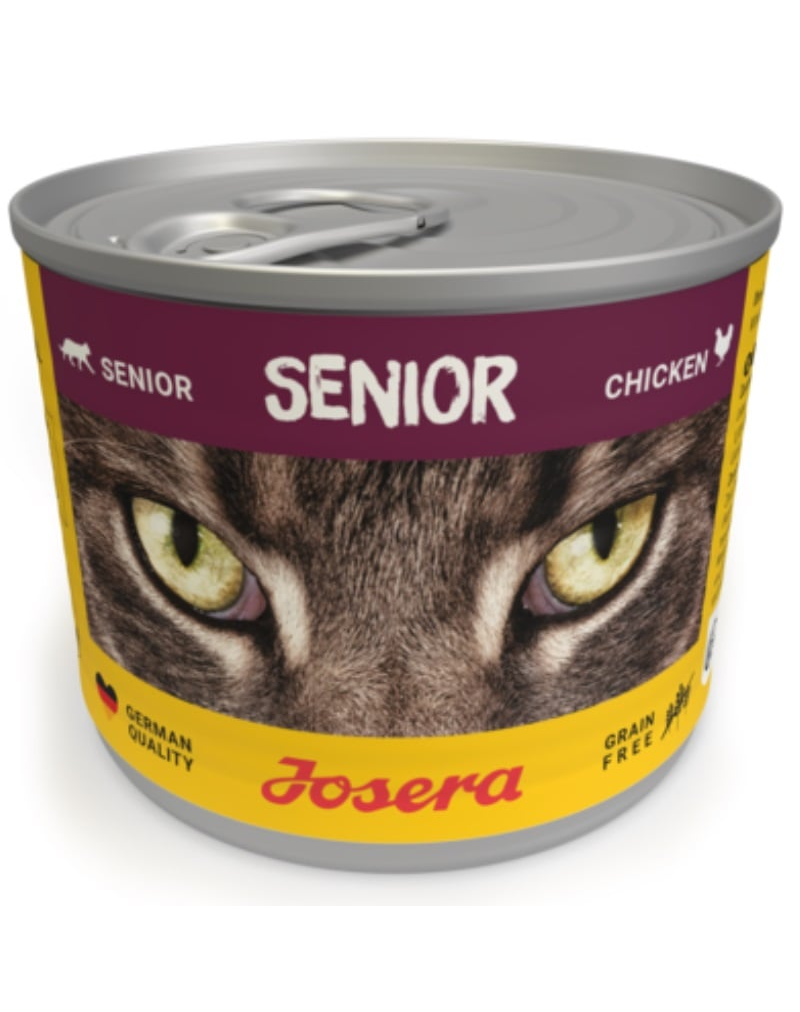 Ce au în comun pisicile și un vin bun? Cu vârsta, devin mai bune! Cu hrana noastră umedă Senior de la Josera, pisicile senioare vor fi răsfățate – și se vor putea bucura de varietate în bol. Rețeta fără cereale este rafinată cu pui suculent. Și uleiul de somon este prezent, cu rolul de a asigura acizii grași omega 3 esențiali.